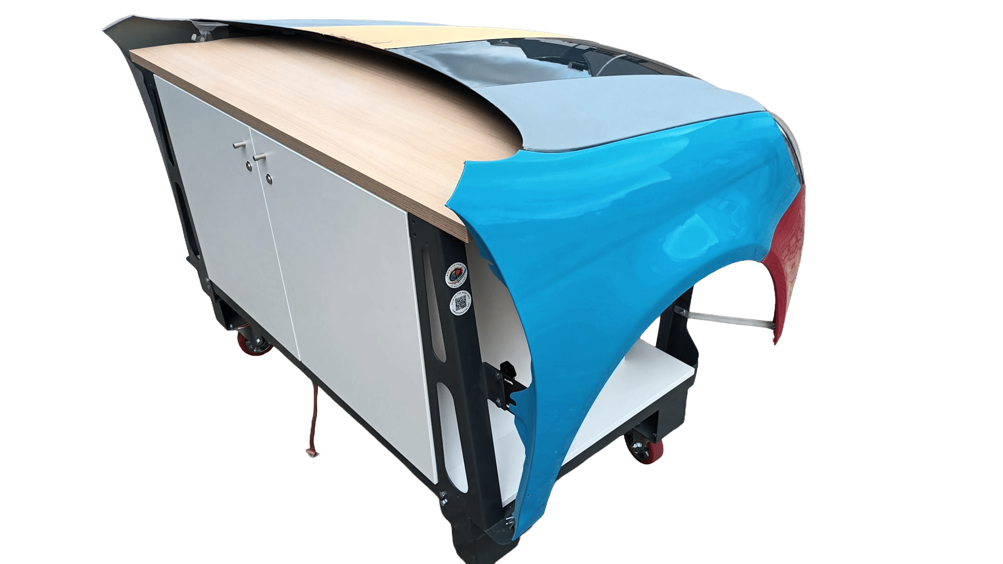 Naast onze “standaard” frames doen wij ook custom work, zoals dit frame met kastruimte. Mocht u opzoek zijn naar specifieke oplossingen, neem gerust contact met ons op dan kijken wij graag samen naar de mogelijkheden!